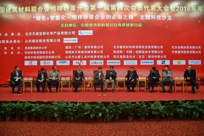本次年會(huì),由北京天維寶辰化學(xué)產(chǎn)品有限公司承辦,并得到了美巢集團(tuán)股份公司、德高(廣州)建材有限公司、北京建筑材料科學(xué)研究總院有限公司、北京金隅砂漿有限公司的鼎力贊助,及華砂砂漿有限責(zé)任公司、福建南方路面機(jī)械有限公司、凱諾斯(中國)鋁酸鹽技術(shù)有限公司、中聯(lián)重科股份有限公司、徐州中新機(jī)械科技有限公司、山東方達(dá)康工業(yè)纖維素有限公司、特樂意信息(技術(shù))股份有限公司的大力支持。而本次年會(huì)的2016年度中國預(yù)拌砂漿行業(yè)年會(huì)答謝晚宴,由山東赫達(dá)股份有限公司獨(dú)家冠名贊助。
