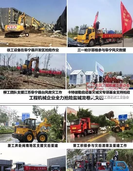 2015年底以來,深圳發(fā)生大范圍滑坡災(zāi)害、江蘇鹽城市阜寧、射陽等地出現(xiàn)強(qiáng)對(duì)流天氣、超強(qiáng)龍卷風(fēng)襲擊、閩南地區(qū)遭遇強(qiáng)臺(tái)風(fēng)“莫蘭蒂”……在這些災(zāi)害發(fā)生時(shí),廈工、晉工、中聯(lián)重科、林德叉車、徐工、三一帕爾菲格、柳工、卡特彼勒等工程機(jī)械企業(yè)快速反應(yīng),迅速集結(jié)救援設(shè)備,第一時(shí)間投入到搶險(xiǎn)救援中去。紛紛派出大型工程機(jī)械設(shè)備和援助隊(duì)伍加入到救援與災(zāi)后重建工作,并向?yàn)?zāi)區(qū)捐款捐物、捐贈(zèng)機(jī)械設(shè)備,展現(xiàn)了工程機(jī)械行業(yè)企業(yè)一如既往的強(qiáng)烈社會(huì)責(zé)任感和崇高的奉獻(xiàn)精神。