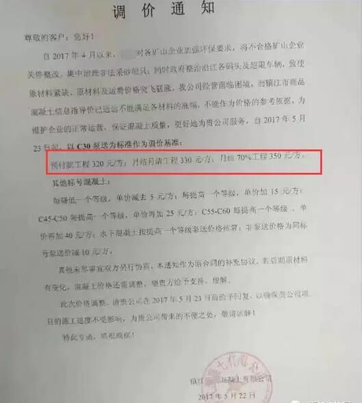 各建筑、施工單位——自2017年3月以來水泥連續(xù)調(diào)價,黃沙、石子等原材料大幅上漲,并供應緊張,混凝土行業(yè)各企業(yè)已無法正常運行,砼行業(yè)資金十分緊張,隨時有停產(chǎn)危險……