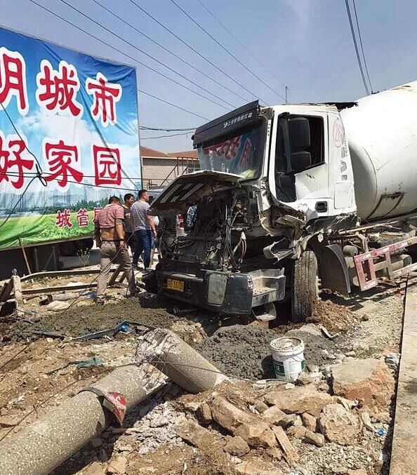 水泥攪拌車(chē)車(chē)主為躲避其他車(chē) 正在協(xié)調(diào)解決賠償問(wèn)題