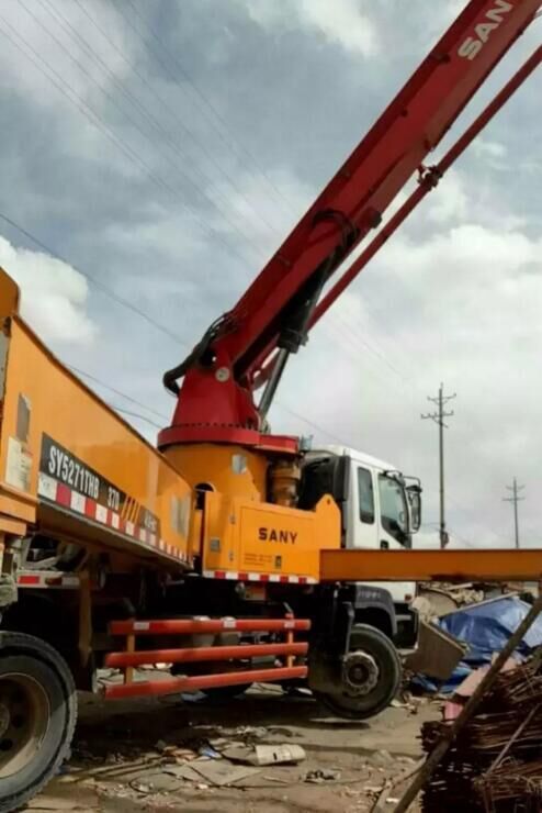 3、泵車(chē)就位后,應(yīng)支起支腿并保持機(jī)身的水平和穩(wěn)定。當(dāng)用布料桿送料時(shí),機(jī)身傾斜度不得大于3°。
