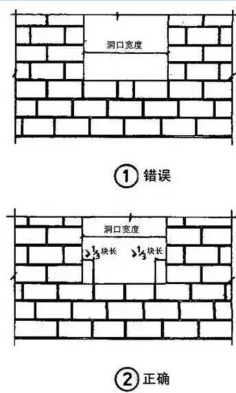 11)墻體的洞口下邊角處不得有砌筑豎縫。
