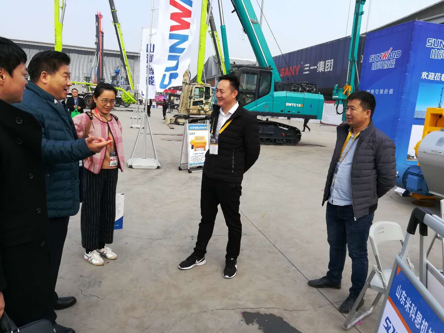 在2017長(zhǎng)沙配博會(huì)上中國(guó)工程機(jī)械工業(yè)協(xié)會(huì)混凝土機(jī)械分會(huì)符忠軒會(huì)長(zhǎng)及秘書(shū)長(zhǎng)易君在砼商網(wǎng)劉娟女士的陪同下走訪參展會(huì)員單位。