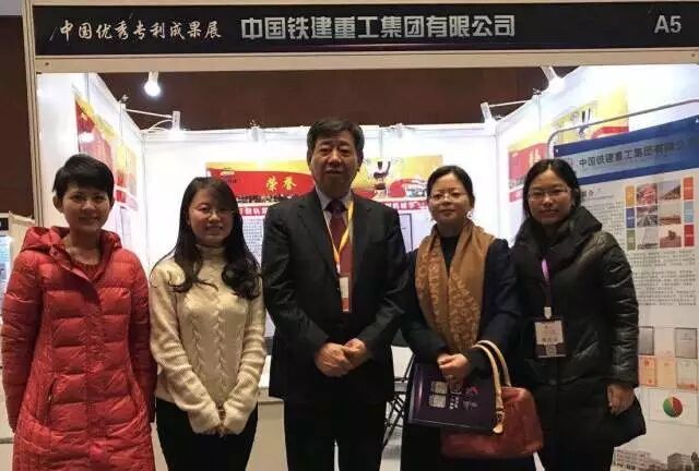 ▲中國鐵建董事長、黨委書記孟鳳朝在中國優(yōu)秀專利成果展上與鐵建重工展區(qū)的工作人員合影留念