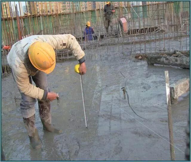 3、超平:拿水準(zhǔn)儀抄平,一般抄五零線,標(biāo)高一定要計算準(zhǔn)確,工人依據(jù)五零線來找平,打出來的混凝土才有平整度。