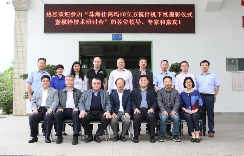 2018年4月18日,珠海仕高瑪公司10立方攪拌機(jī)下線揭彩儀式暨攪拌技術(shù)研討會(huì)在珠海仕高瑪公司舉行,中國(guó)工程機(jī)械協(xié)會(huì)混凝土機(jī)械分會(huì)符忠軒會(huì)長(zhǎng)、長(zhǎng)安大學(xué)馮忠緒教授、趙利軍博士、廣東長(zhǎng)大公路工程公司楊東來總工程師、河南萬里路橋李冠峰總工程師、許昌德通特種混凝土公司孟超總經(jīng)理等領(lǐng)導(dǎo)、專家和嘉賓應(yīng)邀出席儀式和研討會(huì),珠海仕高瑪公司股東黃志輝先生、意大利SICOMA公司董事長(zhǎng)Mr. Galletti、總工程師Marco、珠海仕高瑪公司總經(jīng)理郗俊峰先生、財(cái)務(wù)總監(jiān)唐志敏女士及公司技術(shù)研發(fā)團(tuán)隊(duì)、生產(chǎn)團(tuán)隊(duì)、銷售團(tuán)隊(duì)、售后團(tuán)隊(duì)參加本次活動(dòng)。