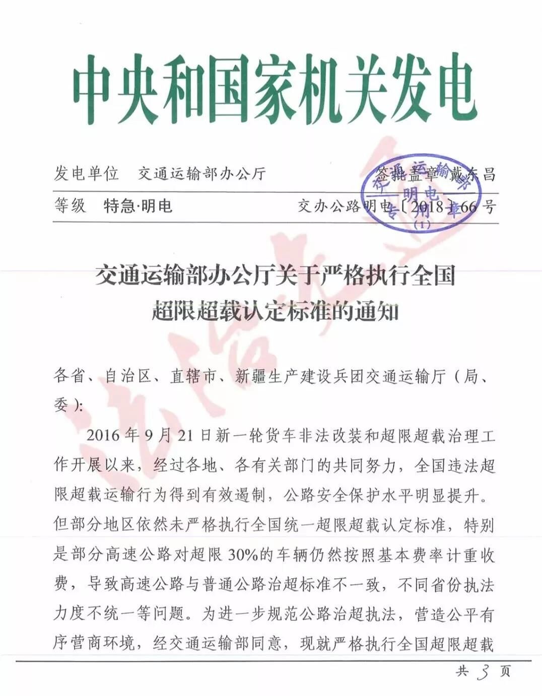 文件強(qiáng)調(diào):部分地區(qū)依然未嚴(yán)格執(zhí)行全國統(tǒng)一超限超載認(rèn)定標(biāo)準(zhǔn),部分高速公路對超限30%的車輛仍然按照基本費率計重收費,導(dǎo)致高速公路與普通公路治超標(biāo)準(zhǔn)不一致,不同省份執(zhí)法力度不統(tǒng)一等問題。未按標(biāo)準(zhǔn)執(zhí)行的地區(qū),9月底前全面整改。