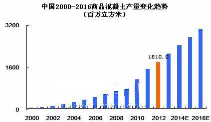 中國商品混凝土市場自2000年開始,增長就大幅度提升,2000-2012年平均增幅高達30%左右。但受全球經(jīng)濟危機的影響,中國2008年的商品混凝土市場也受到了不小的沖擊,商品混凝土的增長率大幅度下滑。不過與歐盟、美國等其他發(fā)達國家混凝土負增長率而言,中國混凝土市場表現(xiàn)的還是十分活躍的。這也反映出了中國的商品混凝土行業(yè)進入高速發(fā)展時期的特征。但中國市場目前的市場狀況十分紊亂,行業(yè)內需要進行一番整合,清理一些市場上不規(guī)范的企業(yè),相信整合后對我國商品混凝土行業(yè)將起到較大的推動作用。中國混凝土網(wǎng)預計“十二五”期間,預拌混凝土產(chǎn)量還將有小幅增長,到2016年中國預拌混凝土產(chǎn)量將突破30億立方米,混凝土行業(yè)將邁上一個新的臺階,但總體行業(yè)回歸平穩(wěn)狀態(tài)。