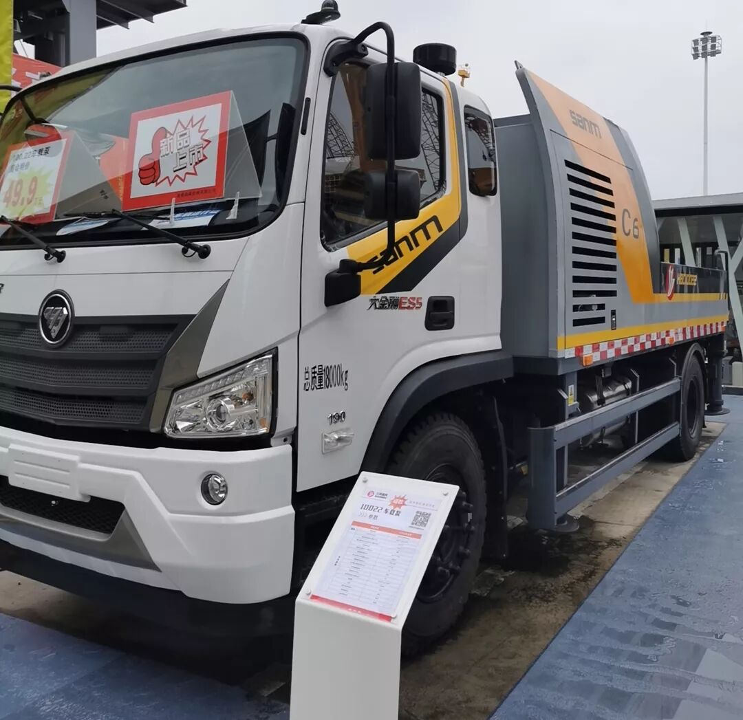 100-22車載泵,是將大型混凝土輸送泵組合在國6福田專用車底盤上,集泵送和行走于一體的混凝土輸送設備。
