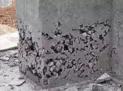 ②較大蜂窩,鑿去薄弱松散顆粒,洗凈后支模,用高一強度等級的細石混凝土仔細填塞搗實;