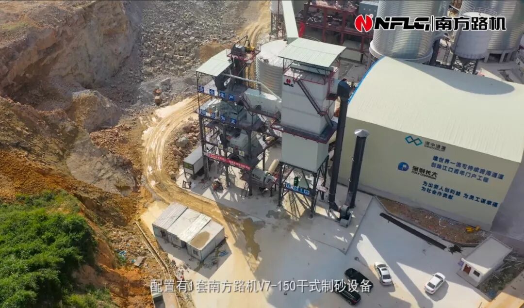 △試驗(yàn)現(xiàn)場(chǎng)采用南方路機(jī)V7制砂設(shè)備生產(chǎn)的機(jī)制砂
