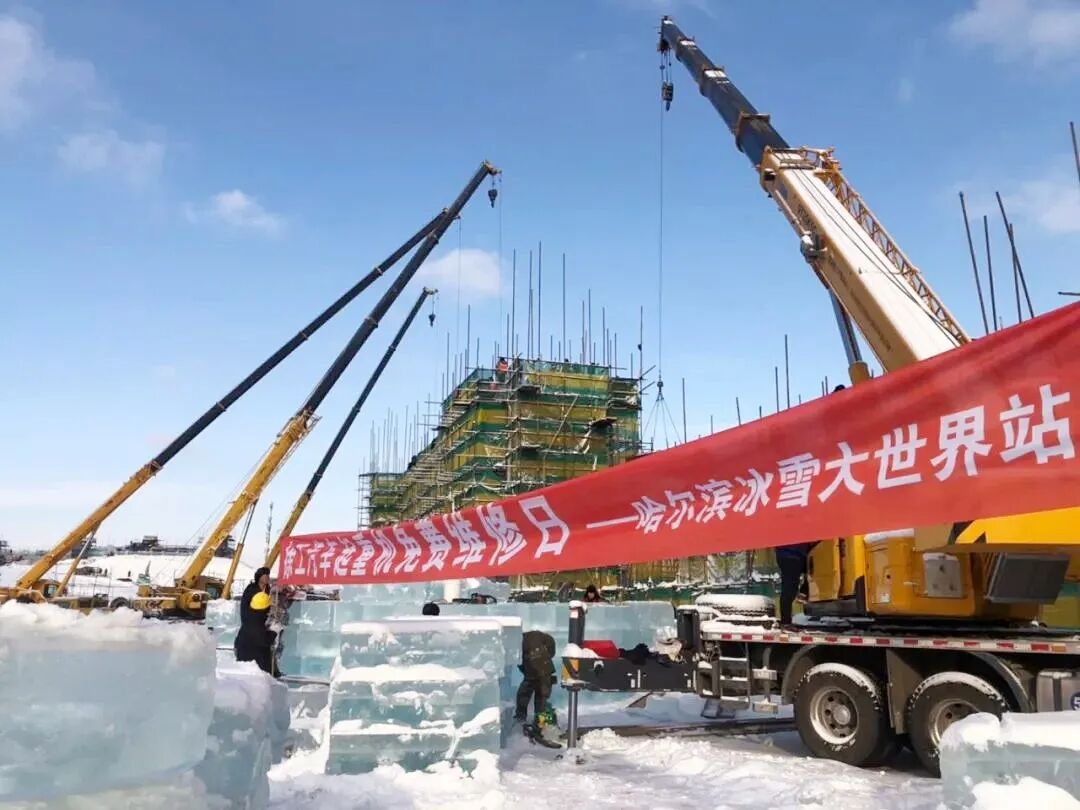 第21屆哈爾濱冰雪大世界建設(shè)現(xiàn)場,XCT25、QY25K5-1、QY70k-1在內(nèi)的50多臺徐工起重設(shè)備將無數(shù)個“量重面滑”、重達一噸的冰塊無縫堆砌。