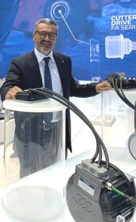 首席執(zhí)行官Fausto Carboni在慕尼黑舉行的2022Bauma展上展示用于建筑機(jī)械的新型電力驅(qū)動裝置。