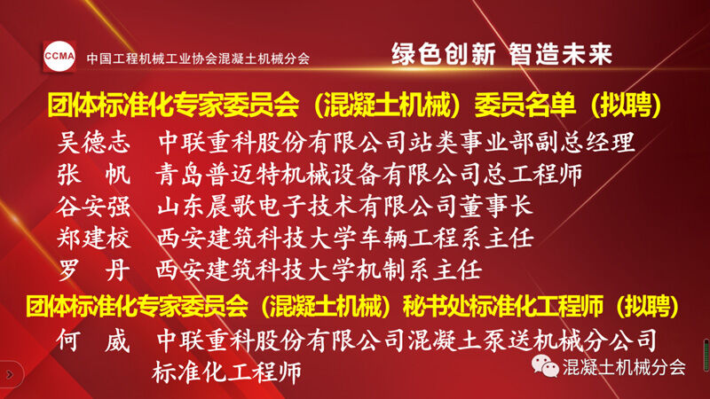 中國(guó)工程機(jī)械工業(yè)協(xié)會(huì)混凝土機(jī)械分會(huì)會(huì)長(zhǎng)符忠軒宣讀兩份通知。一份為《關(guān)于2022年中國(guó)工程機(jī)械工業(yè)協(xié)會(huì)專(zhuān)家委員會(huì)(混凝土機(jī)械)委員聘任的通知》,其中中國(guó)工程機(jī)械工業(yè)協(xié)會(huì)專(zhuān)家(混凝土機(jī)械)委員會(huì)(混凝土機(jī)械)續(xù)聘7位,新聘6位委員,共13位。