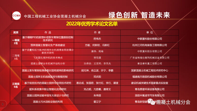 中國(guó)工程機(jī)械工業(yè)協(xié)會(huì)混凝土機(jī)械分會(huì)副秘書(shū)長(zhǎng)龍衛(wèi)平先生宣讀《關(guān)于發(fā)布2022年混凝土機(jī)械優(yōu)秀論文獲獎(jiǎng)名單的通知》。