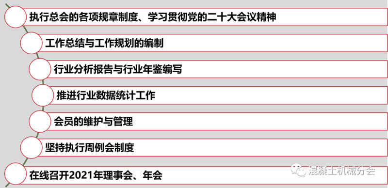 協(xié)會篇主要內(nèi)容包括:規(guī)劃混凝土機械行業(yè)發(fā)展戰(zhàn)略與發(fā)展目標(biāo)。不斷加強團隊建設(shè)與組織建設(shè)、服務(wù)會員企業(yè)、引導(dǎo)行業(yè)解決卡脖子問題、維護行業(yè)發(fā)展秩序、打造行業(yè)上下游全產(chǎn)業(yè)鏈緊密聯(lián)動的行業(yè)協(xié)會,加速推進國產(chǎn)化進程,推動行業(yè)高標(biāo)準、高質(zhì)量發(fā)展。