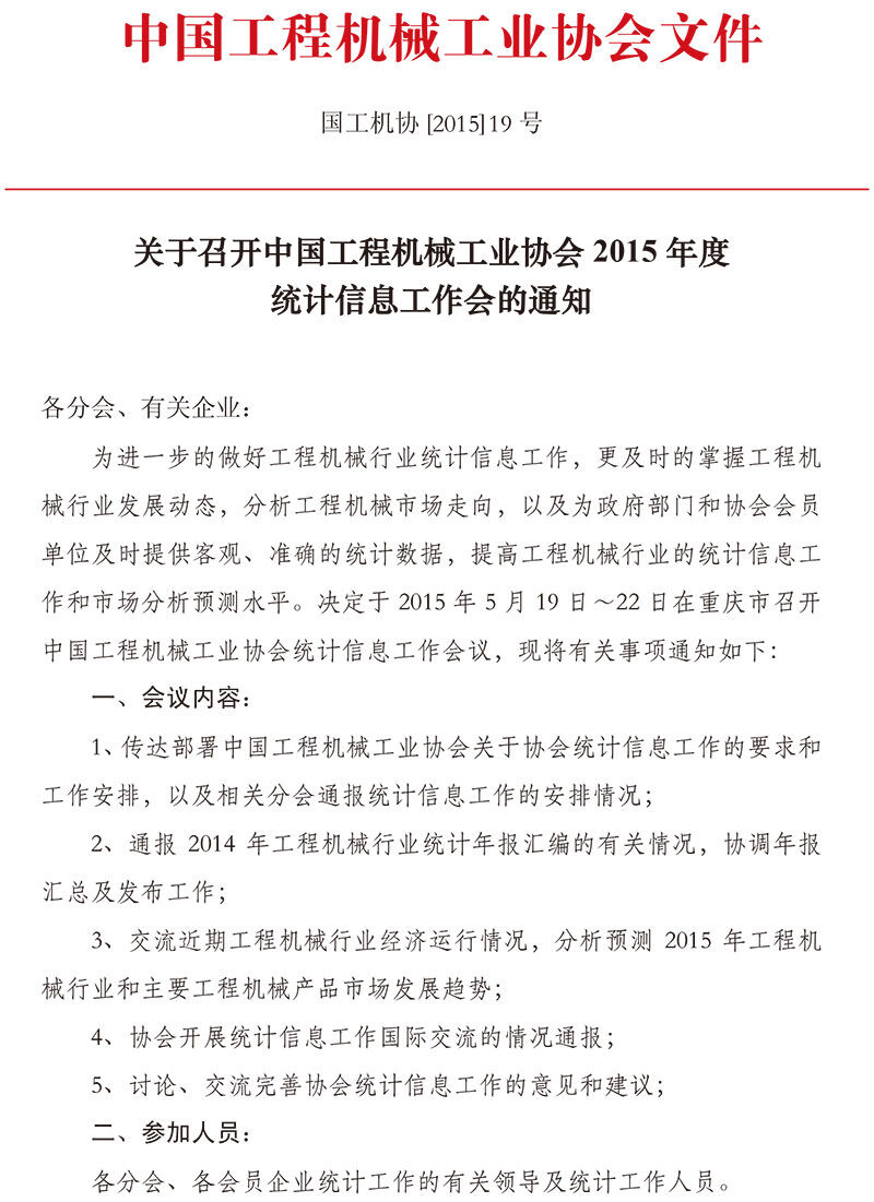 關(guān)于召開中國工程機(jī)械工業(yè)協(xié)會2015年度統(tǒng)計(jì)信息工作會的通知