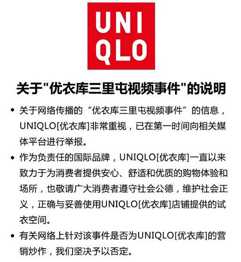 簡(jiǎn)單來說就是一男一女在北京三里屯的優(yōu)衣庫(kù)試衣間里那什么了,