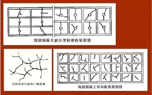 2塑性收縮(干縮)裂縫多發(fā)生在混凝土澆注后、還處于塑性狀態(tài)時(shí),由于天氣炎熱、蒸發(fā)量大、大風(fēng)或混凝土本身水化熱高等原因,而產(chǎn)生裂縫。