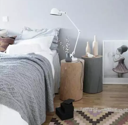 床頭柜選擇了兩個(gè)木墩,在家里頗有原木的氣息,舍棄了床頭板的設(shè)計(jì),沒(méi)有一絲繁縟的感覺(jué),翻來(lái)覆去更加自在。