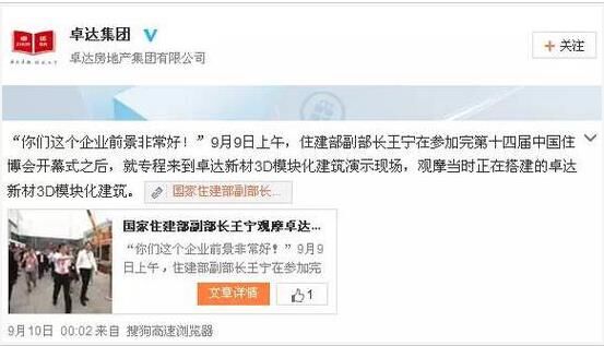 不過,從卓達(dá)的報(bào)道來(lái)看,卓達(dá)主要是用推廣自己3D模塊建房技術(shù)的噱頭吸引官方前來(lái)參觀,給他們“站臺(tái)”,卓達(dá)并不敢在官員們面前宣傳自己私下在進(jìn)行的那些涉嫌“違法集資”的活動(dòng)。