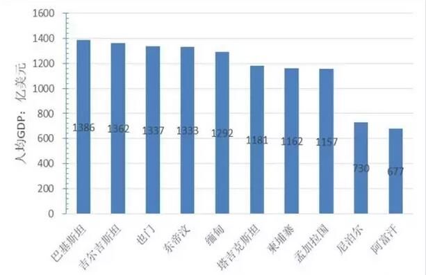 圖5“一帶一路”地區(qū)人均GDP后10名的國(guó)家