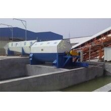 該系統(tǒng)主要由:攪拌車加水清洗裝置,溜槽輸送裝置,砂石漿水分離裝置,和泥漿水后處理裝置組成?;炷凛斔驮O(shè)備清洗后,將殘余混凝土排入溜槽中,在高壓水流沖擊下,經(jīng)溜槽進入砂石分離機,在不斷旋轉(zhuǎn)的分離機作用下,對混凝土進行充分的清洗,同時將砂、石進行分離,分離后的砂、石在導(dǎo)料葉片的作用下背向流動,再通過提升式出料口排出分離機,分別堆放。清洗后的漿水從分離機的底部排出進入沉淀池逐級沉淀后循環(huán)使用或進入攪拌池回收利用。進入攪拌池(一般情況2個攪拌池)的漿水為了防止沉淀凝固,需通過攪拌器的作用,攪拌器的工作為間歇式。分離出水泥漿在連續(xù)的攪拌器作用下,再通過高壓污水泵輸送到攪拌樓中待生產(chǎn)計量再利用。整個控制系統(tǒng)設(shè)有手動和自動控制,方便控制設(shè)置,整個系統(tǒng)運行可靠,故障率低,維護量少等特點。