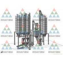 干粉砂漿生產(chǎn)線中用于儲(chǔ)存大宗原料,如水泥、粉煤灰、砂。本案采用國(guó)內(nèi)常用50噸或100噸水泥倉(cāng)(客戶選型)作為原料倉(cāng),一般采用水泥、粉煤灰、砂子、?;⒅槿N原料倉(cāng)。水泥、粉煤灰采用槽罐車上料,砂子和?;⒅椴捎枚肥教嵘龣C(jī)上料。