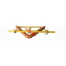 在正機安裝時,首先確定好安裝位置,將前吊桿焊在清掃器三角板上,再將橫粱焊在機架上,前吊桿調正螺絲頂在橫梁上,調正刮板與膠帶距離,后吊環(huán)角鐵焊在機架槽綱下面,吊著清掃器尾部,自動調正清掃器
