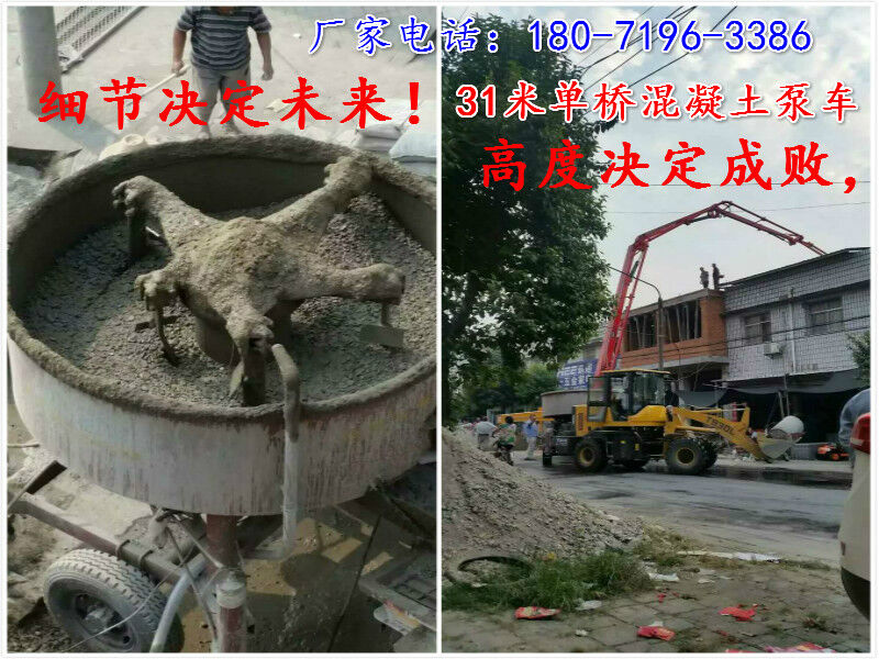 上裝配置:大四節(jié)臂垂直高度31米,采用高強(qiáng)鋼材料,混凝土輸送缸200mm.主油泵韓國傳奇K3V112,臂架油泵德國力士樂,混凝土輸送缸200mm-1600mm,50料斗。臂架為紅色,底座為黃色。