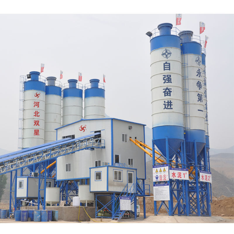 1.河北雙星HZS90混凝土攪拌站,該套混凝土攪拌站設(shè)備主機(jī)可配JS1500雙臥軸強(qiáng)制式混凝土攪拌機(jī)或進(jìn)口混凝土攪拌機(jī)。主機(jī)配有收塵機(jī),具有自動(dòng)收塵、去濕、排風(fēng)、將收集的粉塵向主機(jī)回送再利用的功能。收塵效果 極佳 。水泥倉(cāng)頂裝有圓筒式收塵機(jī),除塵效率高、噪音低。主機(jī)架采用彩鋼板包裝,整潔、美觀(guān)、防塵,具有 良好的 視野。雙帖合并安裝,既方便操作又節(jié)約場(chǎng)地。