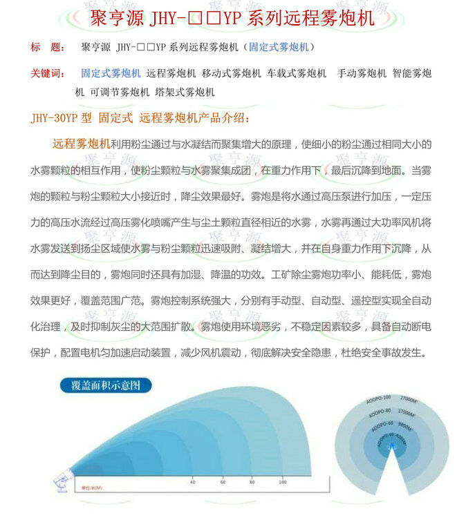 歸屬行業(yè):聚亨源JHY-□□YP系列遠(yuǎn)程霧炮機(jī)