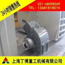 通過(guò)電機(jī)、三角皮帶帶動(dòng)主軸,從而使轉(zhuǎn)子旋轉(zhuǎn),錘子受到旋轉(zhuǎn)時(shí)所產(chǎn)生的離心力向四周伸開(kāi),大塊物料從進(jìn)料口進(jìn)入破碎腔之后,便被高速運(yùn)動(dòng)的錘子擊碎。破碎合格的物料則由下部有縫隙的蓖條排出,不合格的則留在破碎腔內(nèi),被錘子和承擊鐵塊反復(fù)作用,直至能夠排出。