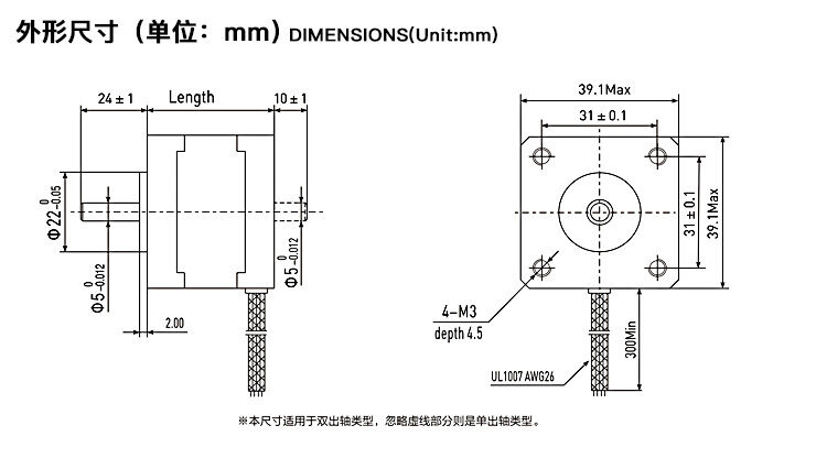 兩相1.8°混合式步進(jìn)電機39系列步進(jìn)電機