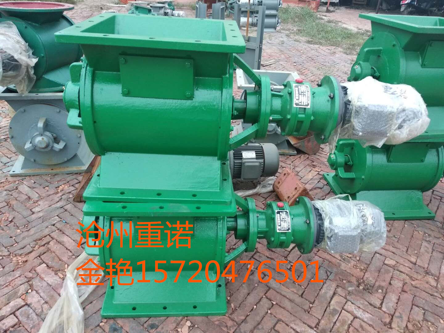 工作原理:星型卸料器工作時(shí),粉塵靠重力落入,充滿上面和側(cè)面的星形葉片空格。葉片轉(zhuǎn)子由電動(dòng)機(jī)通過(guò)減速機(jī)轉(zhuǎn)動(dòng)軸帶動(dòng),葉輪轉(zhuǎn)到下部粉塵靠自重卸下。這種卸塵器一般都安裝在除塵器灰斗下部,為保證連接處的嚴(yán)密不漏風(fēng),在回轉(zhuǎn)卸料器的上部應(yīng)經(jīng)常保持(儲(chǔ)存)一定高度的粉塵。因?yàn)槿~輪轉(zhuǎn)動(dòng)時(shí),卸完粉塵后葉輪轉(zhuǎn)上的那一面經(jīng)常是沒(méi)有粉塵的,所以容易使空氣漏入。為了保持一定高度的灰柱,而且不致卸空,*在灰斗內(nèi)裝設(shè)料位信號(hào)設(shè)施,并與卸塵閥的電動(dòng)機(jī)建立連鎖。