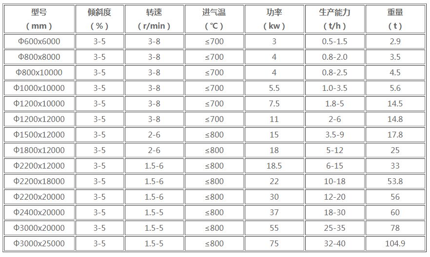 烘干機(jī)主要技術(shù)參數(shù)