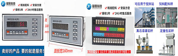 HZS50攪拌站XK3110K(P)稱重包裝秤定量稱重控制儀表,采用高精度信號采樣技術(shù)和智能控制軟件,集稱重、配料、控制于一體的高端儀表。xk3110k(p)稱重控制儀表廣泛應(yīng)用于冶金、包裝、飼料、石化、煙草、建筑等行業(yè)的自動配料過程控制。
