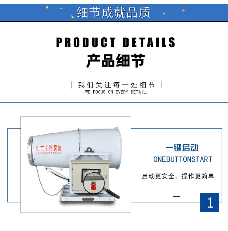 直徑相近的水霧和的粉塵顆粒黏貼,減小水表面的張力,使粉塵顆粒與水霧聚結成團,在重力作用下,然后沉降到地面。達到有效降塵的目的。霧炮機的噴水距離為30到150米,具體規(guī)格可以定制,配套水箱可選3-10噸,主要作用是噴霧抑塵,