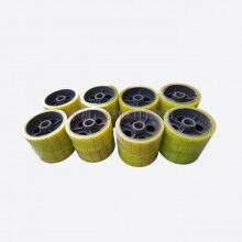 首頁 > 產(chǎn)品 » 配件 » 攪拌站配件 » 滾筒350混凝土攪拌機聚氨酯膠輪 黃色掛膠托輪滾輪 摩擦輪