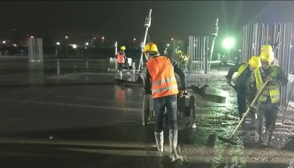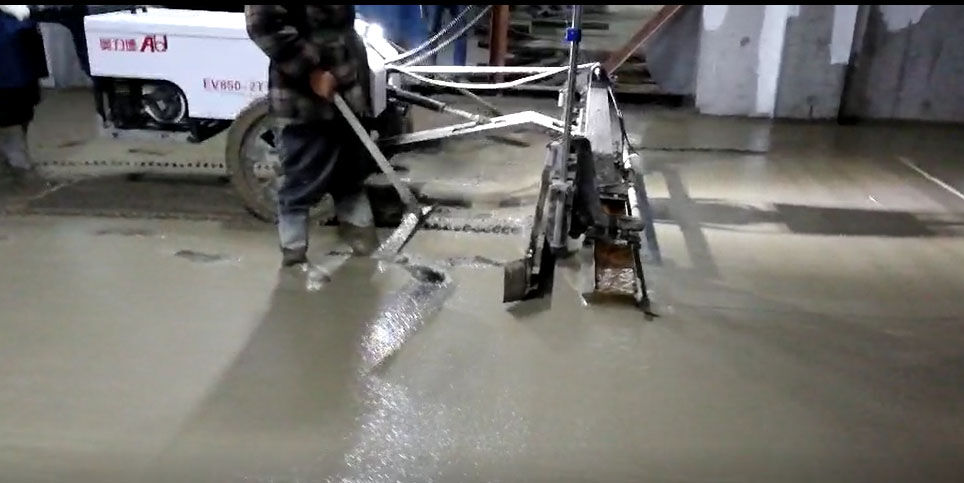 混凝土激光攤鋪機(jī)是用刮板將高出的混凝土帶走并初步刮平,達(dá)到設(shè)計(jì)要求的標(biāo)高。液壓驅(qū)動(dòng)振動(dòng)馬達(dá)產(chǎn)生震動(dòng),頻率為4000次/分鐘,帶動(dòng)整個(gè)振動(dòng)板一起對(duì)混凝土產(chǎn)生振搗。激光攤鋪機(jī)找平不需要拉控制線,也不需要支側(cè)模板來(lái)控制地面標(biāo)高,而由攤鋪機(jī)上的激光測(cè)控系統(tǒng)實(shí)時(shí)控制,只要激光發(fā)射器不受干擾,無(wú)論攤鋪機(jī)移動(dòng)到哪里,都能確保鋪筑后的地面整體上的標(biāo)高不受影響。
