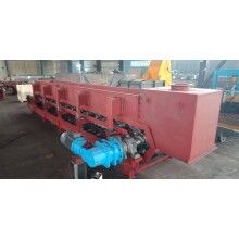 板式給料機結(jié)構(gòu)組成:底座、機架、機頭、驅(qū)動輪、機尾張緊輪、上下托輥、鏈帶、槽板、受料槽、卸料槽和封閉欄板組成。