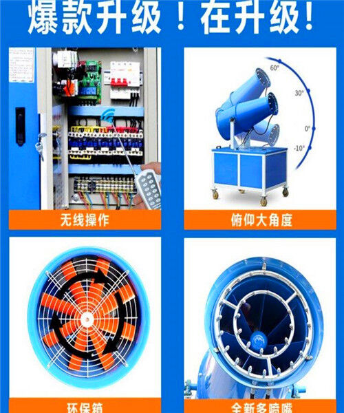 霧炮機(jī)功力強(qiáng)、射程遠(yuǎn)、覆蓋范圍廣、可以實(shí)現(xiàn)精量噴霧;工作效率高、噴霧速度快;對容易引起塵埃的堆場噴水除塵時(shí),噴出的霧粒細(xì)小、與飄起的塵埃接觸時(shí),形成一 種潮濕霧狀體,能快速將塵埃抑制降沉;配套動(dòng)力靈活,既可用三相380V的市電,也可配套柴油發(fā)電機(jī)組供電;可固定安裝在混凝土澆筑的平臺上,也可配套柴 油發(fā)電機(jī)組供電安裝在運(yùn)輸車輛上;操作靈活,使用安全可靠,遙控和人工控制操作,可隨意控制調(diào)節(jié)水平旋轉(zhuǎn)噴霧角度;耗水量其它抑塵噴灑設(shè)備可節(jié)約 ~(噴槍、灑水機(jī)車),且水霧覆蓋粉塵面積遠(yuǎn)遠(yuǎn)大于其它抑塵噴灑設(shè)備。