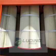 濾筒除塵器的氣流分布很重要,須考慮如何避免設(shè)備進口處由于風(fēng)速較高造成對濾料的高磨損區(qū)域。氣流分布板用于濾筒式除塵器有獨特要求,氣流分布須十分穩(wěn)定和均勻。才有利于氣流的上升和粉塵的下降,氣流分布板開孔率35。根據(jù)計算,阻力系數(shù)<2,由此可見在氣流速度<0.8m/s的情況下,多孔氣流分布板可以滿足濾筒式除塵器的要求。
