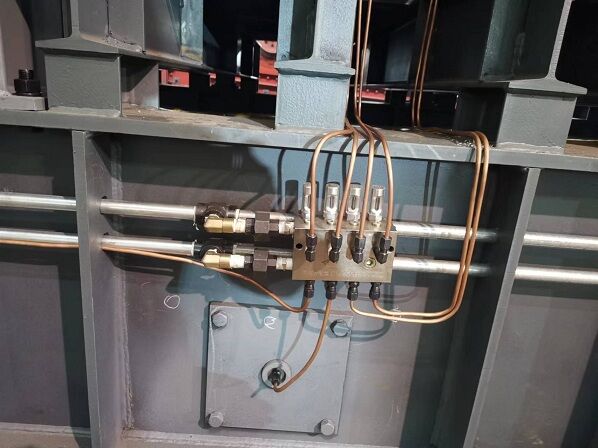 重型板式給料機(jī)潤(rùn)滑系統(tǒng)由儲(chǔ)油罐、油泵、閥門、潤(rùn)滑管路、油壓傳感變送器和PLC控制器組成。由于板式給料機(jī)的潤(rùn)滑口較多,若采用單一管路同時(shí)對(duì)各潤(rùn)滑口注入潤(rùn)滑脂,不但會(huì)使油泵的功率和主管路的壓力增加,而且各潤(rùn)滑口施加的壓力不均勻,影響潤(rùn)滑效果。因此,本系統(tǒng)采用分段潤(rùn)滑的方法,用電磁閥控制各個(gè)潤(rùn)滑管路。該系統(tǒng)有油泵電.機(jī),油壓傳感變送器,潤(rùn)滑管路總閥門,4個(gè)分段潤(rùn)滑管路分閥門等組成。由于電磁閥安全、控制方便,可靠性高,系統(tǒng)均采用電磁閥。重型板式給礦機(jī)自動(dòng)潤(rùn)滑系統(tǒng)應(yīng)滿足以下控制要求: