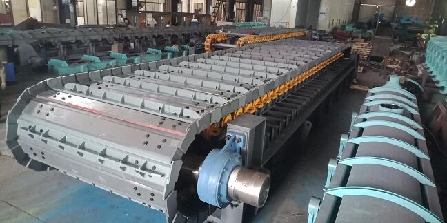 (3)輥體通過卡鍵定位在通軸上,并鎖緊,輥體長度與負荷槽板上固定運轉(zhuǎn)鏈條的加厚槽板等長并對應,支承回程槽板負荷。