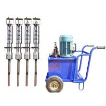發(fā)潤牌劈裂機的速度是破碎錘的速度的7~8倍,大大縮短了工期。這個機器使用很簡單,一個工人就能完成全部操作,其結構就是一個高壓泵站加上輸油管連接的劈裂槍,使用的時候先在需要分裂的巖石上打一個50到100公分深的孔,然后插入劈裂槍,啟動機器,大約30到60秒,石塊即被裂開一條100公分左右長度,1.5公分寬度的裂縫。機器原理就是利用劈裂槍中間的楔塊伸縮,推動包圍楔塊的兩片劈塊往周圍張開,從而由內部脹開巖石。