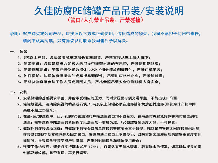 2)公司多年研發(fā),結(jié)合國(guó)內(nèi)外先進(jìn)的滾塑產(chǎn)品生產(chǎn)配方,研發(fā)出專(zhuān)屬久佳防腐環(huán)保型pe儲(chǔ)罐生產(chǎn)配方,能夠大大提升產(chǎn)品的質(zhì)量與性能,所用輔料也是綠色衛(wèi)生安全無(wú)污染的輔料,質(zhì)量有保障;