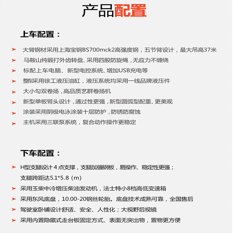 4.整車(chē)采用徐工液壓油缸,液壓系統(tǒng)均采用一線(xiàn)品牌液壓件