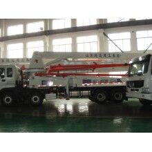 鐵力士牌HDT5420THB-52/5型混凝土泵車是山東鴻達(dá)建工集團(tuán)有限公司在中國(guó)重汽集團(tuán)濟(jì)南卡車股份有限公司同期申報(bào)的豪濼牌ZZ5437N5067C1型泵車底盤基礎(chǔ)上,加裝混凝土泵等專用設(shè)施開發(fā)、研制的。該車屬N3類柴油車,發(fā)動(dòng)機(jī)布置方式為縱置,車輛驅(qū)動(dòng)型式為8×4,前置后驅(qū)動(dòng)。