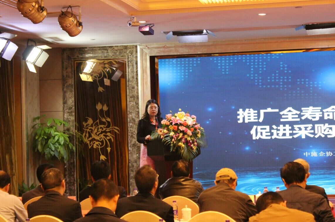 中國施工企業(yè)協(xié)會數(shù)據(jù)服務(wù)有限公司總經(jīng)理謝美珍做《推廣全壽命管理技術(shù)體系,促進采購供應(yīng)業(yè)務(wù)提升》報告